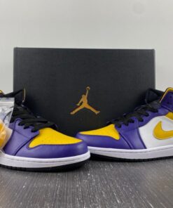 Replica Air Jordan 1 Mid “Lakers” White/Purple-University Gold For Sale