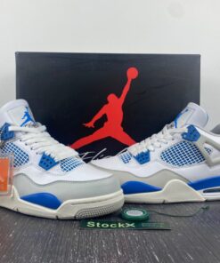 Air Jordan 4 White/Neutral Grey-Military Blue For Sale