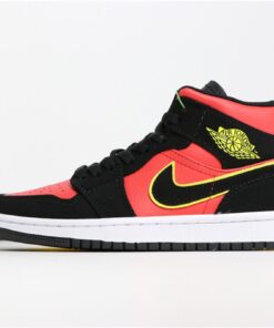 Replica Air Jordan 1 Mid Black/Volt-Hot Punch For Sale