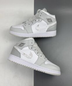 Replica Air Jordan 1 Mid GS White Grey Camo Swoosh For Sale