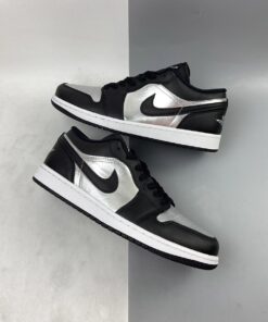 Replica Air Jordan 1 Low ‘Silver Toe’ Black/Metallic Silver-White For Sale