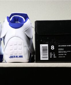 The Air Jordan 18 “Sport Royal” was the last Air Jordan Retro shoe that Michael Jordan would wear in an NBA game. The 40-Year-Old Legend, Michael Jordan played in his final NBA game on April 16, 2003 in Philadelphia. Playing for the Washington Wizards and wearing the Air Jordan 18 (XVIII) in White/Metallic Silver-Sport Royal went to the bench with 4 minutes and 13 seconds remaining in the third quarter giving the fans one last wave expressing his gratitude towards them.