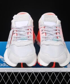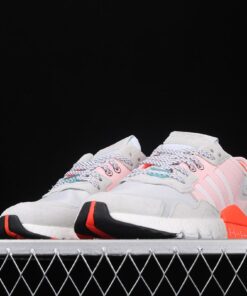 This offering sports a mix of White and Grey hues constructed in a mix of mesh, suede, and leather. Highlighting the shoe are Solar Red accents, 3M Reflective detailing and morse code text on the lateral side of the Boost midsole.