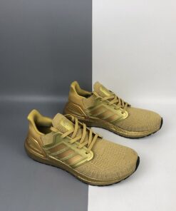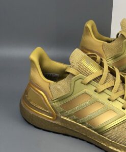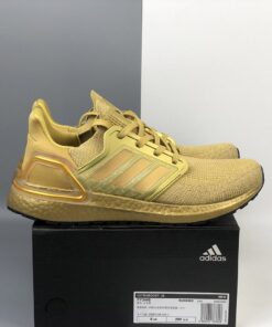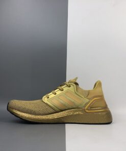 This offering of the adidas Ultra Boost 2020 features a woven and neoprene upper fully covered in a matte Metallic Gold finish. Gold continues on the laces, tonal branding, lace cage, Three Stripes, heel clip, and full-length Boost midsole complete with a Black Continental rubber outsole.