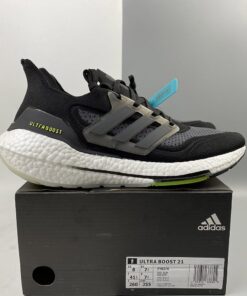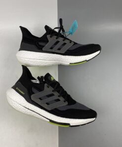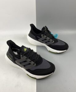 Dressed in a Core Black, Silver Metallic, and Solar Yellow color scheme. This adidas Ultra Boost 2021 is made with Primeblue, a high-performance recycled material made in part with Parley Ocean Plastic. 50% of the upper is textile, 75% of the textile is Primeblue yarn. Additional details includes a semi-translucent lace cage and heel counter completed with a White Boost midsole and stretchweb outsole with Continental rubber.