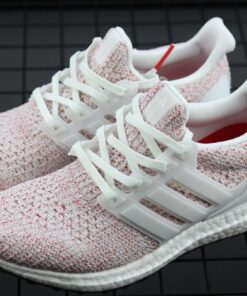 This adidas Ultra Boost features a Footwear White and Scarlet Red color theme which has resulted in the ‘Candy Cane’ nickname. Constructed with Primeknit across the uppers while the heel counter and cage is done in White. Following we have the same shade used on the Boost midsole while Black covers the outsole.