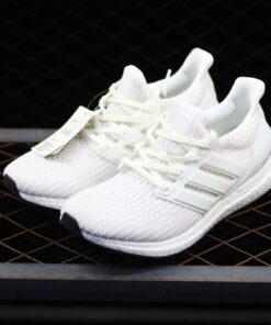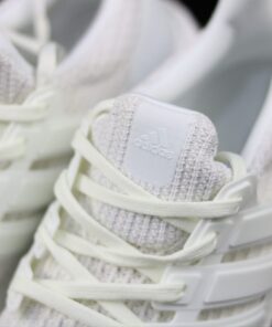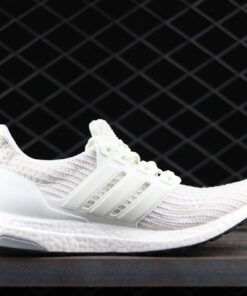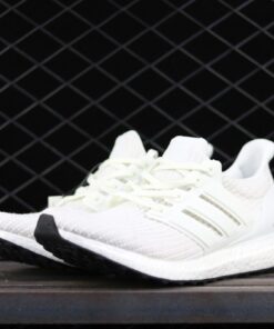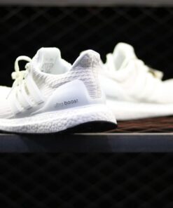 What you will notice is this adidas Ultra Boost is a mix between the 1.0 and 3.0. Like the previous release, the 4.0 features Primeknit across the uppers which resembles that of the Ultra Boost 3.0. The cage has been replaced from the semi translucent tint back to the original solid color which was seen on the Ultra Boost 1.0. While dressed in predominate White, Silver is seen on the Ultra Boost branding that lands on the heel counter. Completing the look is a Black outsole.