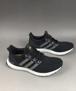 A potential major storyline of 2018 could be adidas’ celebration of the 5th Anniversary of BOOST. Debuting in early 2013, the brand’s pebble-foam cushion unit exploded onto the market in 2015 thanks to the popularity of the Ultra Boost as well as the Yeezy footwear line. The first-ever Boost sneaker was actually the Energy Boost, a shoe that was unveiled in a black/white colorway with hints of yellow. It appears that adidas is paying homage to that colorway with this special edition Ultra Boost release that features a black/grey Primeknit upper, grey stripes, and yellow detailing on the tongue logo, torsion bar, and the insoles.