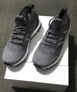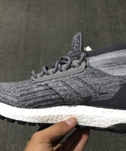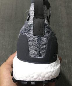 This adidas Ultra Boost comes in a mid top build while constructed with Grey throughout the Primeknit upper. The same shade covers the sock like collar and Three Stripes branding. Across the heel counter we have Dark Grey while White hits the Boost midsole. Finishing the look is a Black Continental rubber outsole.