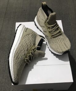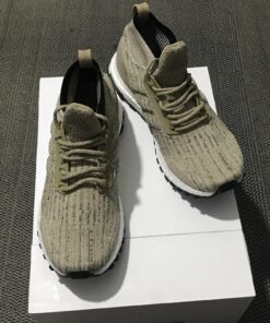 this adidas Ultra Boost ATR Mid is highlighted with various shades of Khaki and Tan across the upper. In addition they feature Primeknit along with a sock like collar. Other details include White on the Boost midsole and Black around the collar, Ultra Boost branding and outsole.