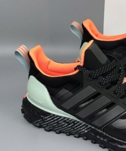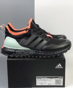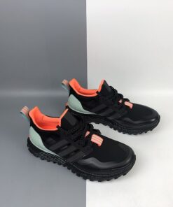 Shown here are two color options for men and women. The men’s pair comes dressed in Core Black, Night Metallic, and Green Tint, while the women’s sports a Grey Two, Silver Metallic, and Glow Orange makeup. Both are constructed in a mix of ripstop and neoprene, water-repellent material to keep your feet warm and dry along with added heel pull tabs. Printed Boost midsole atop a rugged rubber outsole completes the design.