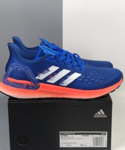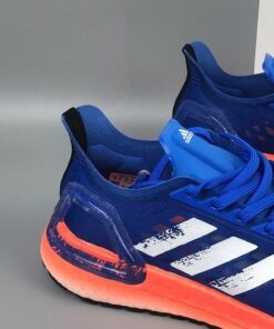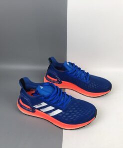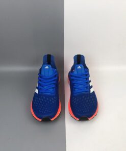 Dressed in a Glory Blue, Core White, and Solar Red color scheme. This edition of the adidas Ultra Boost sports a Blue base with White Three Stripes inspired by Japanese calligraphy atop a gradient Solar Red Boost midsole and Black rubber outsole.