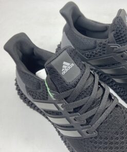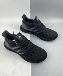 the “Triple Black” take is a sleek expression of the futuristic model that brings UltraBOOST technology and the FUTURECRAFT 4D cushioning system together. The upper of the shoe features a Primeknit black base accented by matching TPU midfoot cages and heel counters updated with “Ultra4D” lettering with a shiny finish. Elevating the shoe is a full-length 4D-printed midsole constructed of light, oxygen, and liquid resin in black paired with a matching rubber outsole section