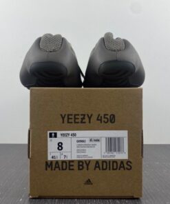 This offering of the adidas Yeezy 450 features a Grey sock-like Primeknit upper with matching tonal laces and exoskeleton EVA foam sole design. Yeezy and the adidas “globe” logo branded on the insoles completes the design.