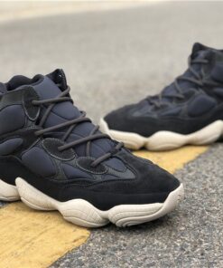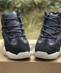 Dressed in a “Slate” colorway, here is the first look at the upcoming Yeezy 500 High. The shoe appears to features a Dark Blue neoprene-like material with Black suede overlays atop a Sail adiPrene sole.