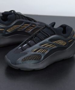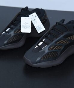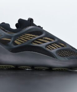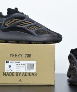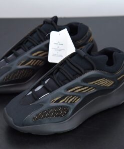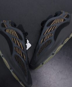 This adidas Yeezy 700 V3 features a Black engineered mesh upper with its signature cage overlay, Tan-like streaks on the sides atop an EVA foam midsole replacing traditional Boost cushioning.