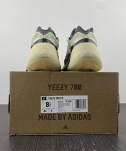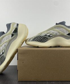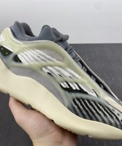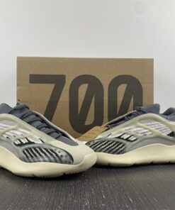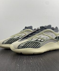 This colorway of the adidas Yeezy 700 V3 opts for a White and Black Primeknit upper that is then paired up with the model’s signature glow-in-the-dark cage overlay. Elsewhere you will find Grey on the tongue and inner bootie as well as light Grey suede toe overlays. A Creamy sole unit with visible Orange pods underneath round out the main features of the sneaker.