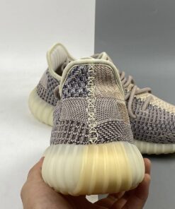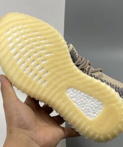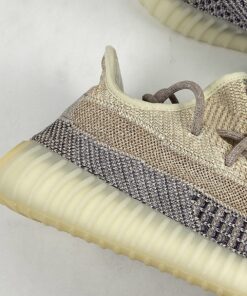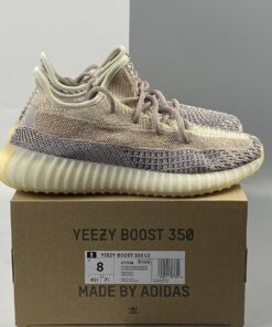 this adidas Yeezy Boost 350 V2 comes with a Primeknit upper which displays shades of Cream, White, Black, and Grey. In addition, we have Tan used on the side strip that wraps half the shoe. Finishing the look is a two-tone Boost midsole.
