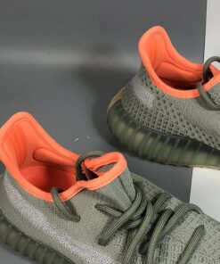 This offering of the Yeezy Boost 350 V2 features a Sage Green Primeknit upper with Vibrant Orange covering the sockliner atop a Gum-colored rubber outsole. Highlighting the shoe is its reflective stripe on the sides and heels.