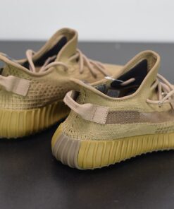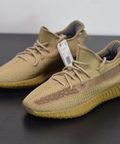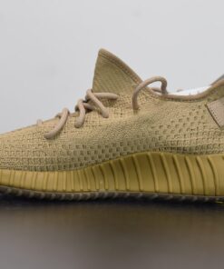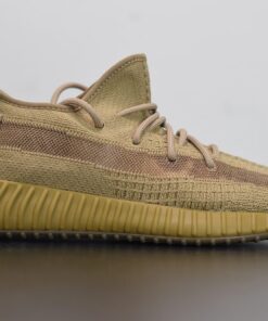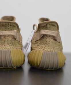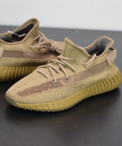 This offering of the adidas Yeezy Boost 350 V2 features a Tan Primeknit upper with a darker shade of Tan on the lateral stripe. A Khaki hue is used on the back heel tab and laces completed with a Gum rubber outsole and Sunny Yellow heel pod.