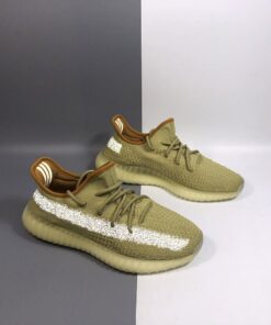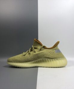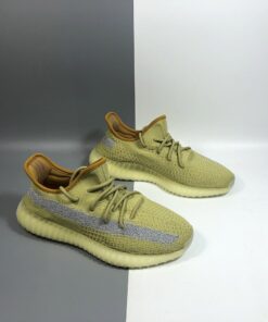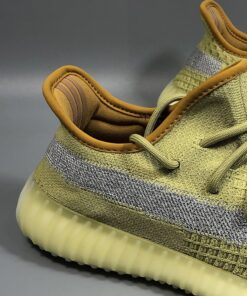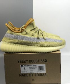 This offering of the adidas Yeezy Boost 350 V2 comes dressed in a Marsh color blocking. It features a Bright Yellow Primeknit upper paired with a Brown sock liner atop a Yellow Boost midsole and translucent outsole.