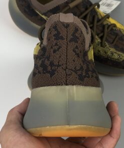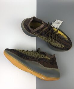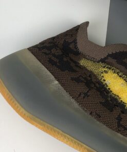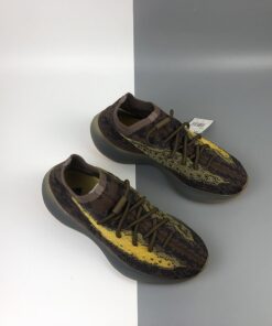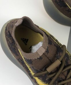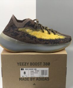 This “LMNTE” colorway of the adidas Yeezy Boost 380 features an Earthy Brown Primeknit upper with a Navy Blue pattern. A Light Brown sicklier, Yellow stripe on the midfoot section atop a Yellow Gum rubber outsole completes the design.