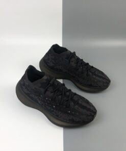 This offering of the adidas Yeezy Boost 380 features a slate Black Primeknit upper with small Navy Blue accents. A transparent midsole atop a Gum rubber outsole completes the design. There will also be a reflective version releasing as well.