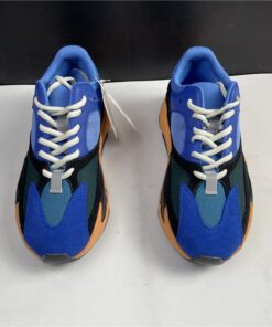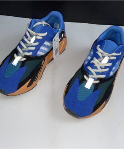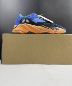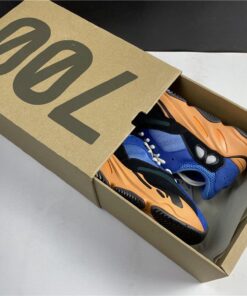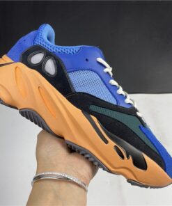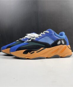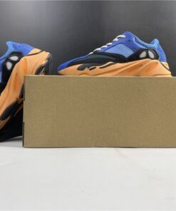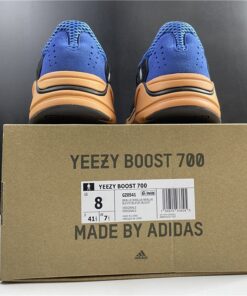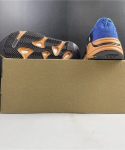 This upcoming adidas Yeezy Boost 700 features a Royal Blue upper with suede and mesh panels. Black detailing, White laces atop a vibrant Orange and Black outsole completes the design.