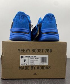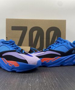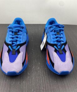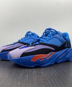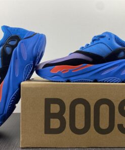 This new Hi-Res Blue makeup of the adidas Yeezy Boost 700 comes constructed in a mix of mesh, leather, and suede. It starts off with a predominantly Blue upper that is then paired up with Black suede overlays, Purple tones on the toe area and a Blue rubber sole with hits of Orange on the midsole.