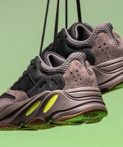 Dressed in a Mauve color scheme. This iteration of the adidas Yeezy is highlighted with Lime Green accents on the midsole, which was Orange on the original pair. Its upper comes in a mix of Black and Dark Grey color tones atop a Gum rubber outsole.