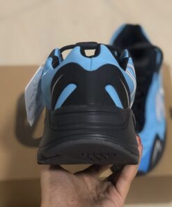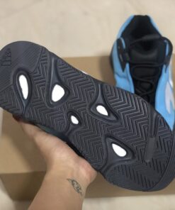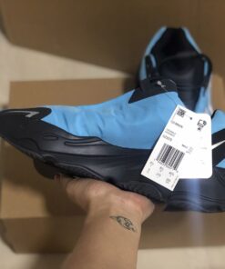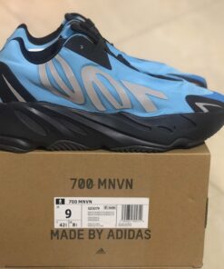This offering of the adidas Yeezy Boost 700 MNVN features an a “Bright Cyan” upper made of up nylon instead of suede and leather used on other models. Other details includes 3M reflective hits, its signature oversized “700” branding on the lateral side, Black overlays atop a full-length enclosed Boost midsole.