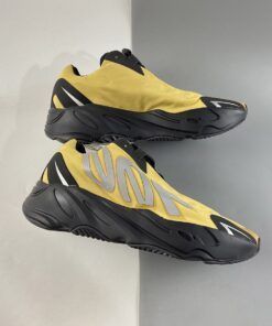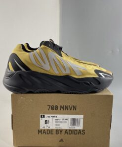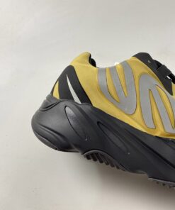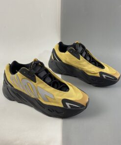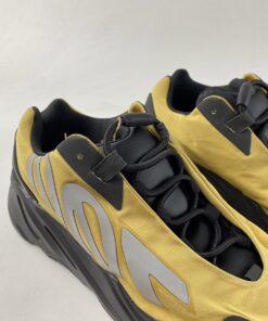 this adidas Yeezy Boost 700 MNVN comes with a Golden Yellow nylon upper while 3M reflective appears on the large ‘700’ branding on the lateral side. Next, Black adorns the overlays, tongue, and laces and a full-length enclosed Boost midsole finishes the look.