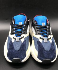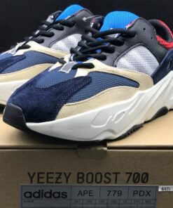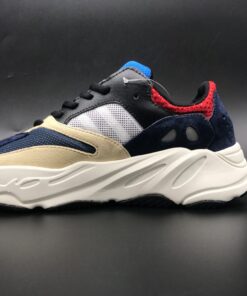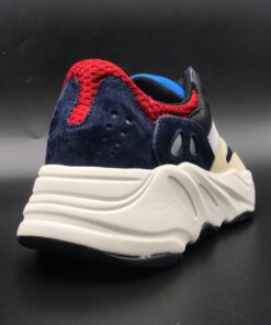 To be specific, this adidas Yeezy Boost Wave Runner 700 comes dressed in a Navy, Cream, Red, White, Black and Light Blue color combination. As for the construction, we have suede on the overlays while leather lands on the eyestays and mesh wraps the heel and collar. Following we have the unique midsole which features Boost while Black covers the outsole to complete the look.