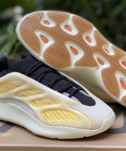 To be specific, this adidas Yeezy Boost Wave Runner 700 comes dressed in a Navy, Cream, Red, White, Black and Light Blue color combination. As for the construction, we have suede on the overlays while leather lands on the eyestays and mesh wraps the heel and collar. Following we have the unique midsole which features Boost while Black covers the outsole to complete the look.
