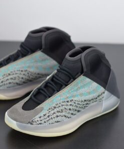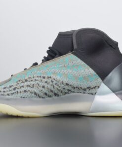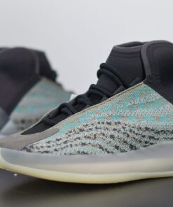 This adidas Yeezy Quantum featuers a Marled Olive Primeknit upper with Grey and Blue accents paired with a Black Reflective heel. Unlike the performance version, this model will not feature additional TPU caging on the upper.
