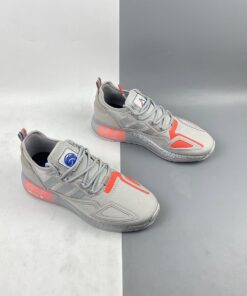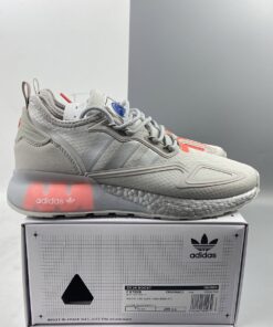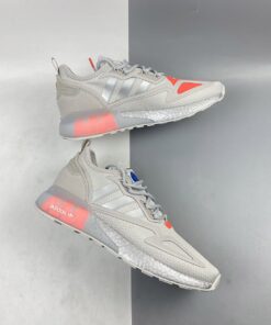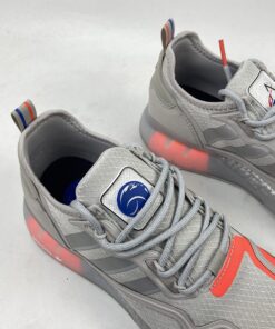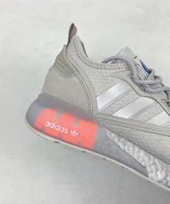 Following a new collaboration with Ninja, the pair now flaunts gray textile uppers that are matched by TPU overlays of the same hue. Unexpectedly, rather than using the same gray for the stripes on the side, the stripes have a silver metallic finish for added dimension. This silvery effect is also seen on the often-white Boost midsole to create a futuristic look. For added pops of color, solar red stripe and zig-zag accents are found on the midsole’s semi-translucent cage, heel, and toe.