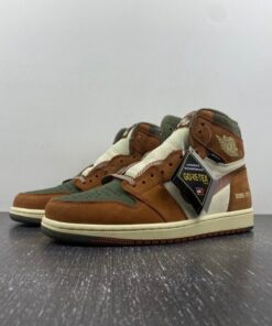 Stay stylish and dry with the Air Jordan 1 Element Gore-Tex Legend Coffee sneakers. These shoes feature a waterproof Gore-Tex upper in a sleek coffee colorway, perfect for any weather conditions. The iconic Air Jordan 1 silhouette ensures a comfortable fit and classic look, while the durable construction will keep you looking fresh no matter what the day brings. Upgrade your sneaker game with the Air Jordan 1 Element Gore-Tex Legend Coffee.