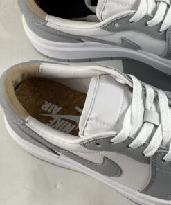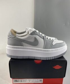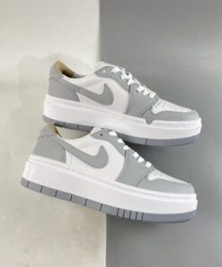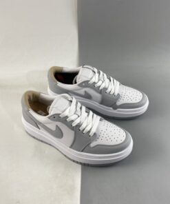 Step up your sneaker game with the Air Jordan 1 Elevate Low in White/Wolf Grey. This sleek and stylish shoe features a classic Air Jordan 1 silhouette with a low-top design for a modern twist. The crisp white leather upper is accented with subtle Wolf Grey details for a clean and versatile look. Whether you’re hitting the court or the streets, these Air Jordans will elevate your style to the next level.
