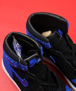 Step up your sneaker game with the Air Jordan 1 Flyknit “Royal” in Black/Game Royal-White. This iconic silhouette features a lightweight and breathable Flyknit upper, providing a modern twist on a classic design. The bold colorway of black, game royal, and white adds a pop of style to any outfit. With the Air Jordan 1’s signature cushioning and support, these sneakers are perfect for everyday wear or hitting the court. Don’t miss out on this sale price for a must-have addition to your sneaker collection.