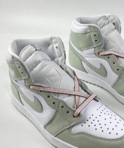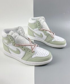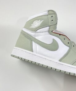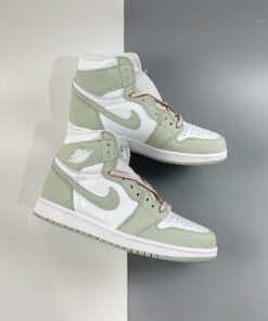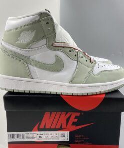 Step up your sneaker game with the Air Jordan 1 High OG in the eye-catching Seafoam/Healing Orange-White colorway. These iconic sneakers feature a premium leather upper in a unique color combination that is sure to turn heads. With the classic Air Jordan 1 silhouette and high-top design, these shoes offer both style and comfort. Whether you’re hitting the court or the streets, these Air Jordans are a must-have addition to your collection. Get your hands on a pair today and elevate your sneaker game.