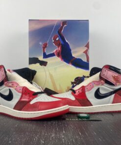Step into the Spider-Verse with these Air Jordan 1 High OG sneakers. Featuring a bold University Red, Black, and White colorway inspired by the iconic comic book series, these shoes are a must-have for any sneakerhead or Spider-Man fan. With the classic Air Jordan 1 silhouette and high-quality materials, these sneakers offer both style and comfort. Don’t miss out on your chance to own a piece of sneaker history with the Air Jordan 1 High OG “Spider-Verse.”