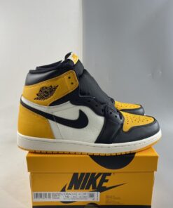 Step up your sneaker game with the Air Jordan 1 High OG ‘Yellow Toe 2022’. Featuring a bold black, taxi, and white colorway, these iconic sneakers are sure to turn heads wherever you go. With the classic Air Jordan 1 silhouette and premium materials, these shoes offer both style and comfort. Don’t miss out on your chance to add these limited edition kicks to your collection. Get your pair today!