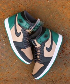 Step up your sneaker game with the Air Jordan 1 High Premium in Black/Pink-Metallic Green. These stylish kicks feature a sleek black upper with pops of pink and metallic green accents for a bold and eye-catching look. The premium materials and iconic Air Jordan silhouette make these sneakers a must-have for any sneakerhead. Whether you’re hitting the court or hitting the streets, these Air Jordans will have you looking fresh and feeling comfortable all day long. Get your hands on a pair today and elevate your sneaker collection.