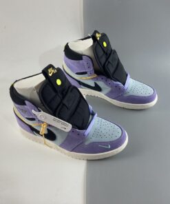 The Air Jordan 1 High Switch in Purple Pulse/Glacier Blue-Sail-Black is a stylish and versatile sneaker that combines vibrant colors with classic design. Featuring a high-top silhouette and premium materials, these sneakers are perfect for both casual wear and athletic activities. With a comfortable fit and iconic Air Jordan branding, these shoes are a must-have for any sneaker enthusiast. Get your pair today and step up your sneaker game!