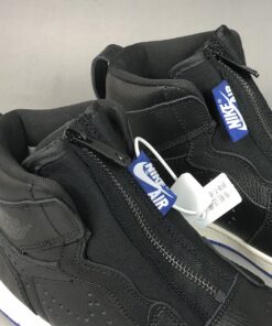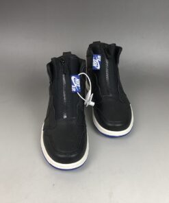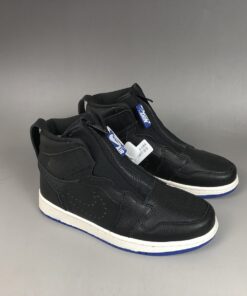 The Air Jordan 1 High Zip Black/Hyper Royal-Sail is a stylish and versatile sneaker that combines classic design with modern details. Featuring a sleek black and blue colorway, this shoe is perfect for both casual and athletic wear. The high-top silhouette provides ankle support, while the zip closure adds a unique touch. With the iconic Air Jordan logo and comfortable cushioning, these sneakers are a must-have for any sneakerhead. Get your pair today and step up your shoe game!