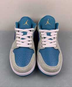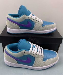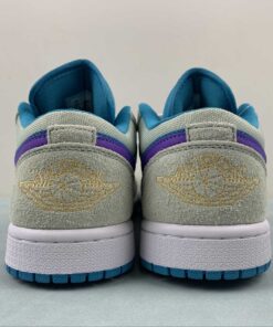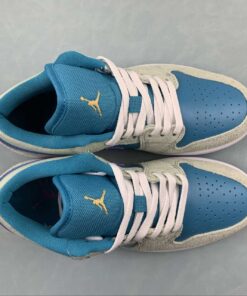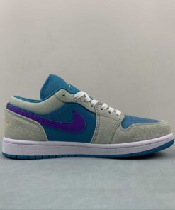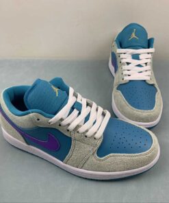 Step up your sneaker game with the Air Jordan 1 Low in the eye-catching Aquatone/Concord-Light Bone-Gold-White colorway. These stylish kicks feature a mix of vibrant and neutral tones, making them versatile enough to pair with any outfit. The iconic Air Jordan silhouette ensures both style and comfort, making them a must-have addition to your collection. Don’t miss out on the chance to snag a pair for yourself today!