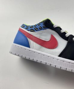 Step up your sneaker game with the Air Jordan 1 Low in Black/Light Fusion Red-White-Coast. These stylish kicks feature a sleek black upper with pops of vibrant red and coastal blue accents. The iconic Air Jordan logo on the side adds a touch of classic flair. Whether you’re hitting the court or the streets, these sneakers will keep you looking fresh and feeling comfortable all day long. Get your hands on a pair today!
