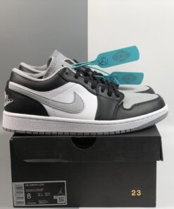 The Air Jordan 1 Low Black/Light Smoke Grey-White sneakers are a stylish and versatile addition to any sneaker collection. Featuring a sleek black and grey colorway with white accents, these shoes are perfect for everyday wear or for hitting the court. The iconic Air Jordan logo on the side adds a touch of retro flair, while the low-top design offers a comfortable fit. Don’t miss out on these must-have kicks!