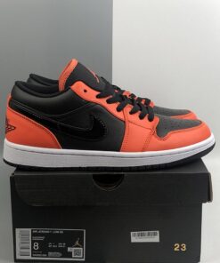 Step up your sneaker game with the Air Jordan 1 Low Black Neon Orange. These stylish kicks feature a sleek black leather upper with eye-catching neon orange accents for a pop of color. The iconic Air Jordan logo on the side adds a touch of retro flair. Whether you’re hitting the court or the streets, these sneakers will keep you looking fresh and feeling comfortable all day long. Get your hands on a pair today and stand out from the crowd.