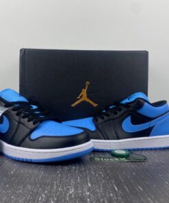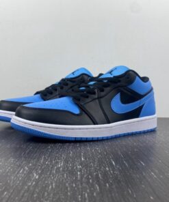 Step up your sneaker game with the Air Jordan 1 Low Black/University Blue-White. This iconic shoe features a sleek black and blue colorway with the classic Air Jordan logo on the side. The low-top design offers a comfortable fit, while the durable construction ensures long-lasting wear. Whether you’re hitting the court or the streets, these Air Jordans are sure to turn heads. Don’t miss out on adding this must-have sneaker to your collection.